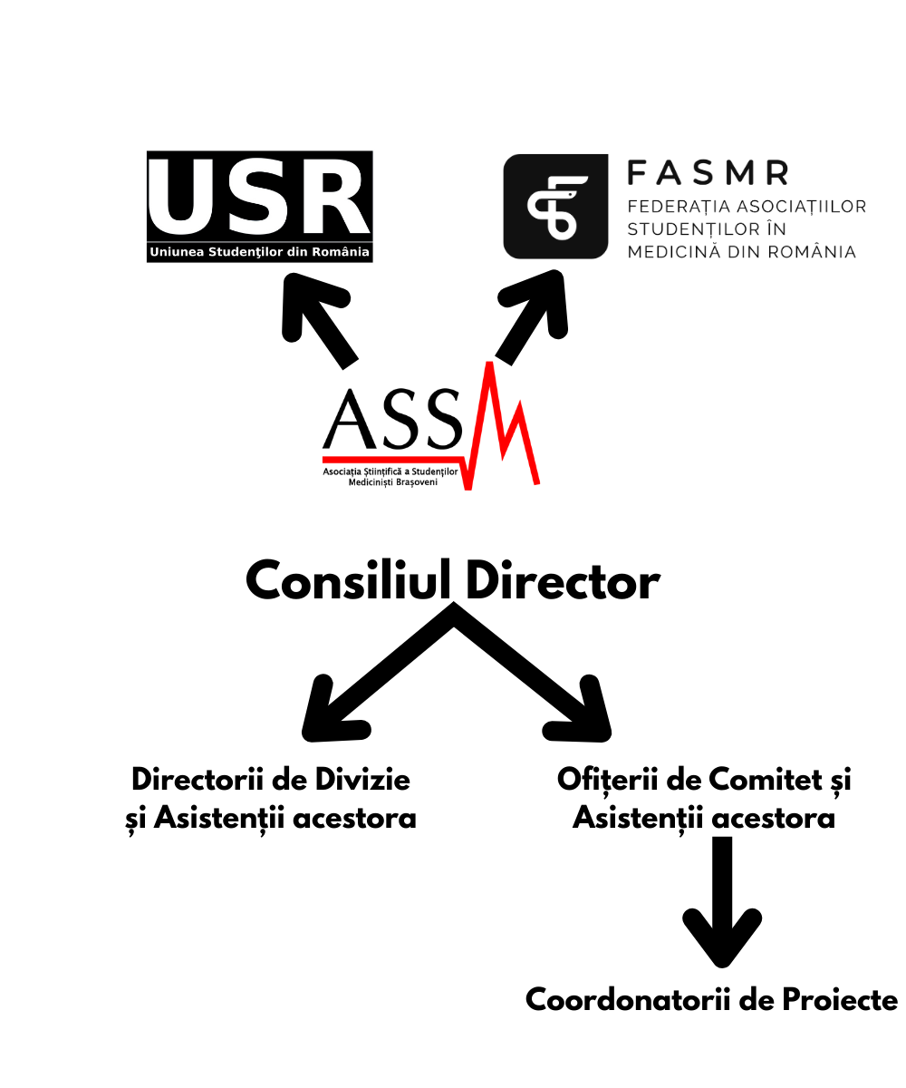 Structura noastră este simplă: avem un Consiliu Director, ce colaborează în permanență cu Biroul Executiv, iar împreună coordonează activitatea Coordonatorilor de Activități de la nivel local.